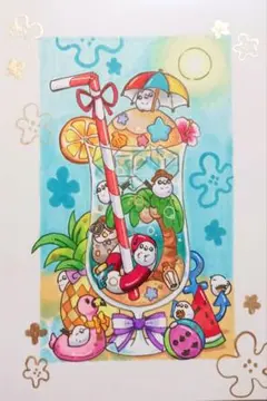 カラフルなコーヒーカップと音符のデザインが特徴のポストカードセット。