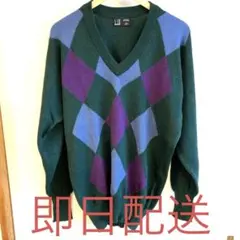 ダンヒル dunhill スコットランド製 ニット 刺繍ロゴ チェック ウール