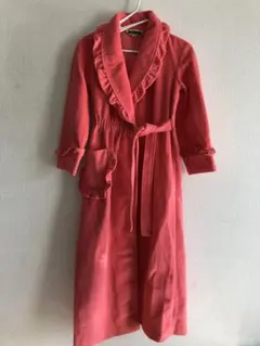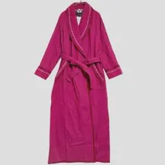 フリース風の柔らかい素材で、ベルト付きの濃いピンクローブ。