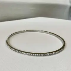 チャンネルセッティングでクリスタルをはめ込んだロジウムコーティングのバングル。