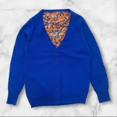 美品 花柄カーディガン 青系 長袖カーディガン カーディガン 羽織れ 花柄