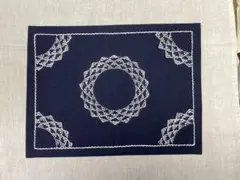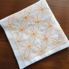 ホワイトリネンのベースにはぎれを刺繍糸、刺し子糸でステッチしています