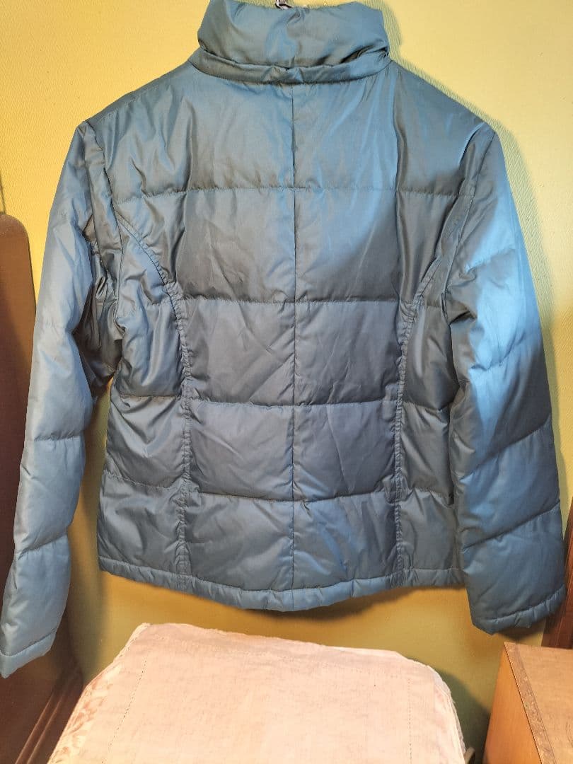 シンプルなデザインのダークグリーンのダウンジャケット。