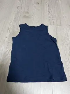 青と白のタイダイ柄のリブ編みノースリーブタンクトップ。