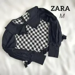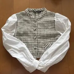 【美品】ZARA シアーツイードシャツブラウス ツイード切り替え S