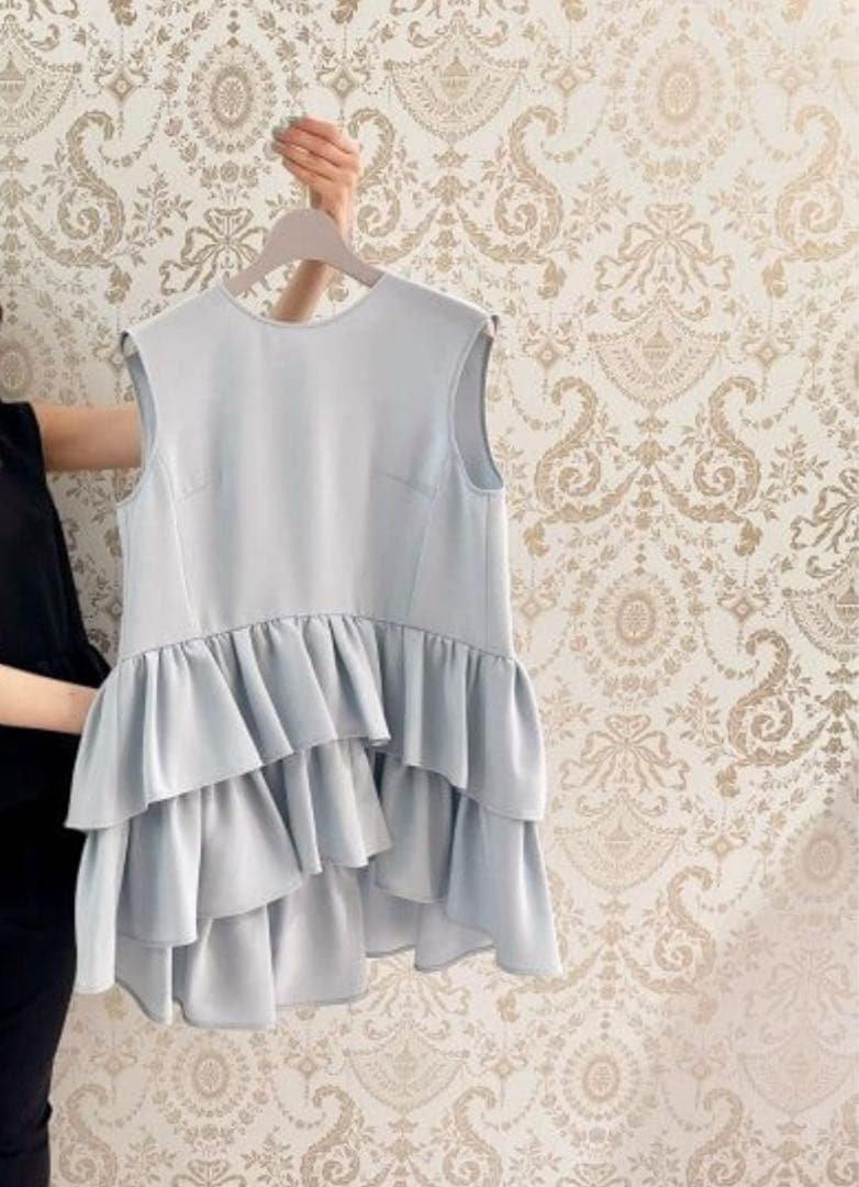 フリルデザインがおしゃれな、サックスブルーのノースリーブです!