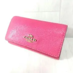 シンプルでエレガントなブラックレザーのキーケース、COACHのロゴが施されています。