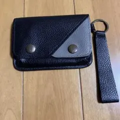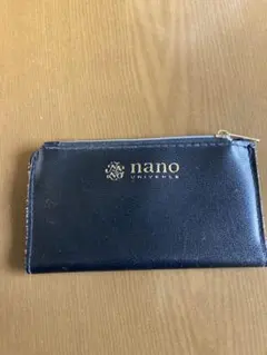 ブラックレザーの二つ折りコインケース、nano universeの刻印付き。
