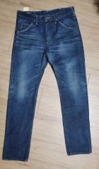 少しスリム目のストレートですごくシルエットがいいです。また、綺麗な水色かつライトオンスなのでサラッとスラックスのように履くことができるのが魅力です。