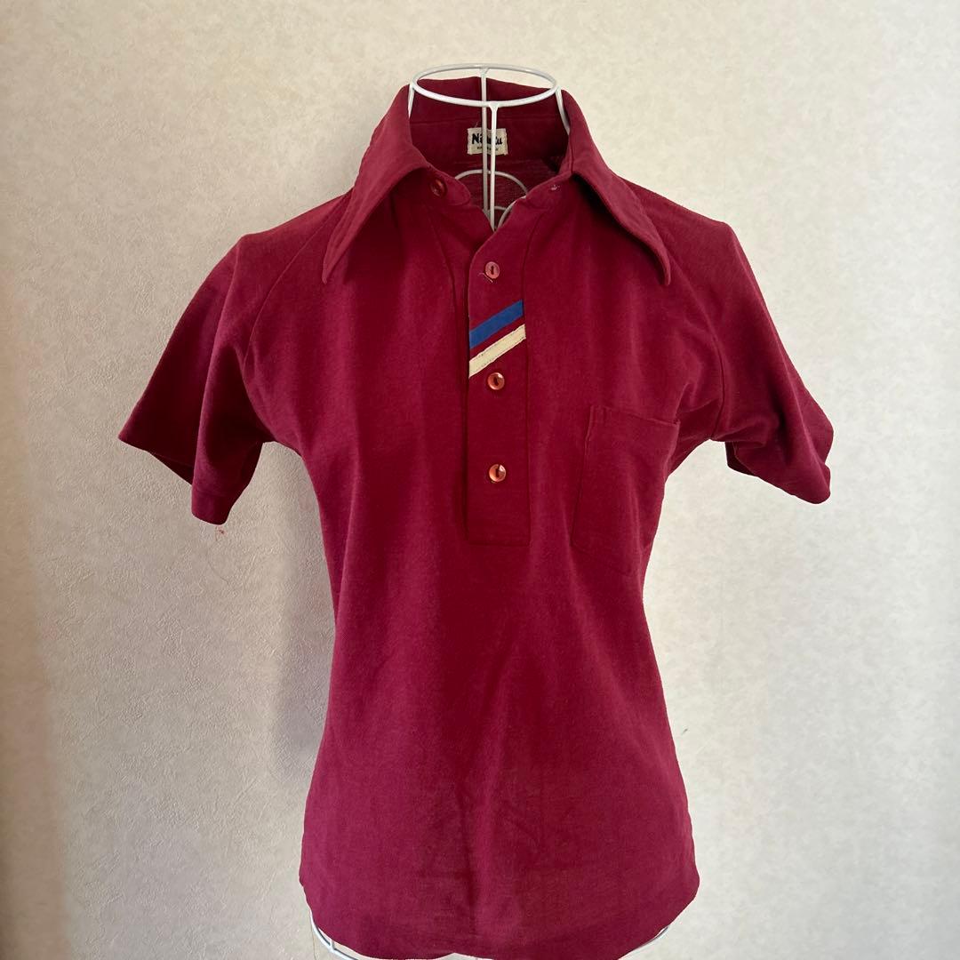 日本製のNittakuポロシャツ、赤色でストライプアクセントが特徴。