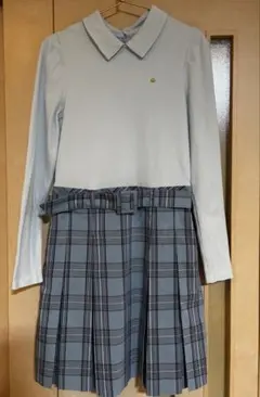 チェック柄のフォーマルワンピース、サイズ160、スパンコール付きベルト付き。