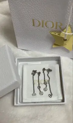 Diorのロゴとパールをあしらったエレガントなピアス。