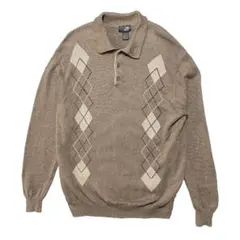 ヴィンテージ ベージュ ボーダー 幾何学 模様 レトロ ニット ポロシャツ