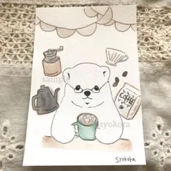原画 水彩画 狼 珈琲 ポストカード 手描きイラスト アナログイラスト 特厚口
