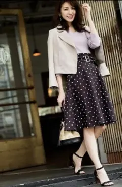 【ジャスグリッティ】フレアスカート(M)膝丈 花柄 総柄 紺 フェミニン ジップ