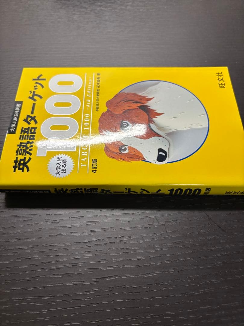 大学入試向けの英熟語学習書、犬のイラストが特徴。