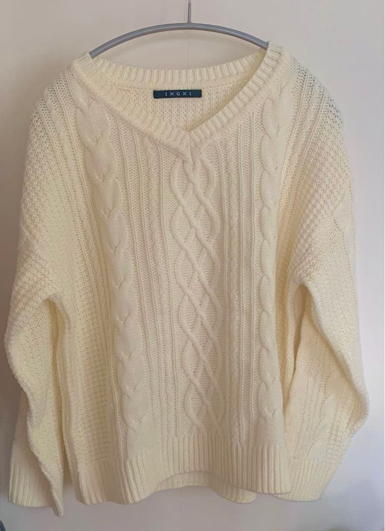 INGNI ケーブルVネックニット M