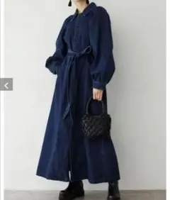 GATHER SLEEVE DENIM MINI ドレス ブルー