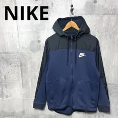 ネイビーのカモフラージュデザインのNikeジップアップフーディ。