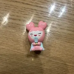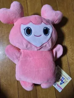 ハート型の耳を持つピンクのぬいぐるみで、寝ている表情が特徴的です。