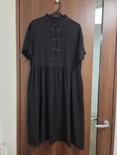 このチャイナワンピースは、エレガントな花柄の刺繍が施されており、シンプルながらも華やかな印象を与えます。