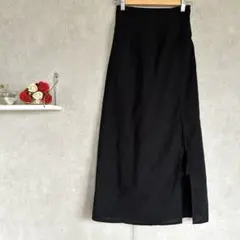 軽やかな黒と白の花柄ロングスカート、フリルデザインでエレガントな印象。