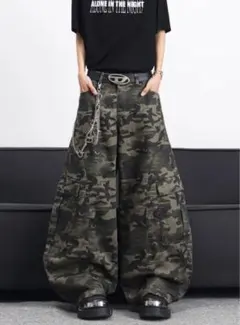 Y2K 迷彩 カーゴパンツ グランジ トレンド 古着 グリーン メンズ