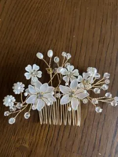 パールが美しいシルバーのヘアコーム、エレガントなスタイルに最適。結婚式、入学式、普段使いでもおかしくありません。