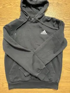 ネイビーのadidasフルジップパーカー、ホワイトストライプ付き。