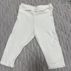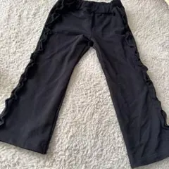 ホワイトに黒のドット柄、フリル付きウエストバンドの130cmサイズのボトムス。