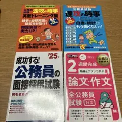 2025年度に受験した際に購入したものです。人物試験•面接試験対策本、政治学•行政学の一問一答、ロボット先生の頻出時事は書き込みなし。速攻の時事は第1章のみマーカーによる書き込みがあります。