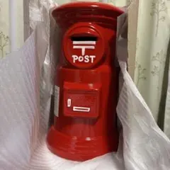 赤い陶器製の郵便ポスト型貯金箱です。