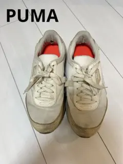 黒と赤のPumaスニーカー、サイドに赤いラインが特徴。