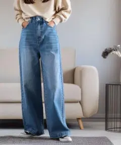 クラシカルエルフ ハイウエストデニム ストレートパンツ ゆったりシルエットL