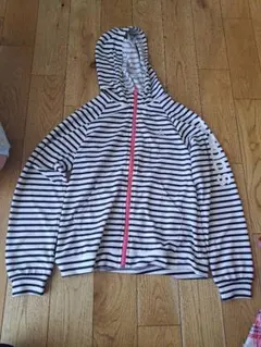 アディダス レディース 赤と白のストライプデザインのadidasフード付きジャケット。