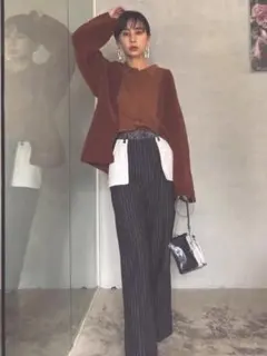 Ameri VINTAGE ランダムボーダーコンパクトカーディガン