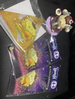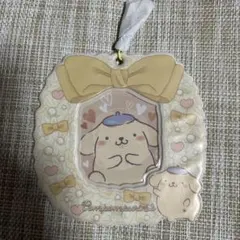 ポムポムプリンの丸型金属キーホルダー、花のモチーフ付きで可愛いデザイン。