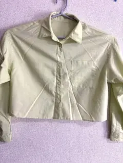 黒と白のチェック柄のクロップドシャツ、ラグランスリーブデザイン。