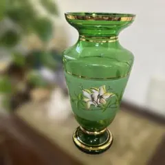 ユニークな形状のガラス製フラワーベース。