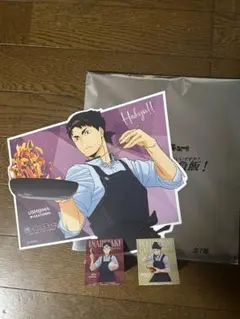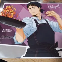 大戸屋 × ハイキュー!! ダイカット描き下ろしビジュアルボード 「牛島若利 」に、おまけ紙スタンド「澤村大地」付きです。