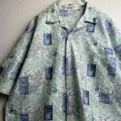 レトロ 半袖シャツ ペイズリー柄 総柄 メンズ XLサイズ ベージュ系 柄シャツ