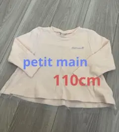 黒地に白い水玉模様の120サイズのトップス、裾にフリル付き。