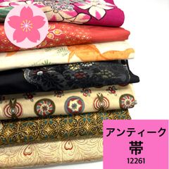 アンティーク帯 袋帯 名古屋仕立て 上品 菊 ベージュ生地