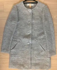 ZARA BASIC ノーカラーコート ツイード オフ白 ステンカラーコート