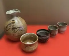 陶元八代京楽窯作 五色ぐい呑み 陶器製 お猪口 5個セット