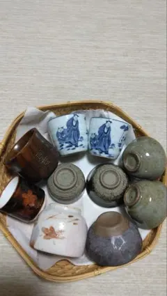 画像通りの現物出品となります、詳細は画像にてご判断ください。多彩な色合いの陶器製お猪口5個セット