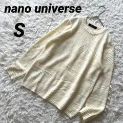 【ナノユニバース】リブニット 長袖 Vネック 襟レース サイドスリット