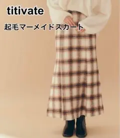 titivate ティティベイト リネンライクラップAラインリボン付スカート M