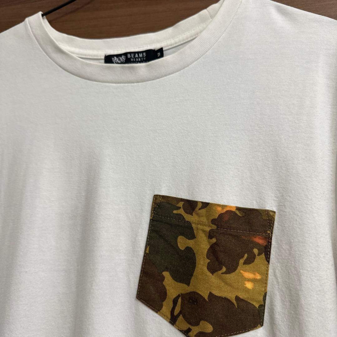 【BEAMS】 ビームス Tシャツ メンズMサイズ ホワイト 胸ポケット付き