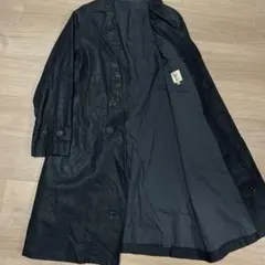 シンプルな黒のステンカラーコート、胸ポケット付きで実用的。